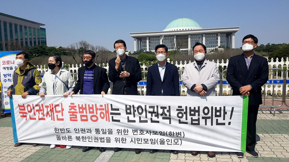먼저 김태훈 한변 회장은 “현 정부가 작년 12월 대북전단금지법을 공포해 이민복 단장(대북풍선단), 김문수 의원(전 경기도지사)과 함께 헌법소원을 했다. 그러나 여태까지 헌법재판소가 묵묵부답, 직무유기 중”이라며 “대북전단금지법이 지난달 30일부터 시행되고 있어 이제 우리가 북한 주민을 도와줄 수가 없게 되었으며, 대한민국을 인권후진국으로 후퇴시키고 있다”고 했다.