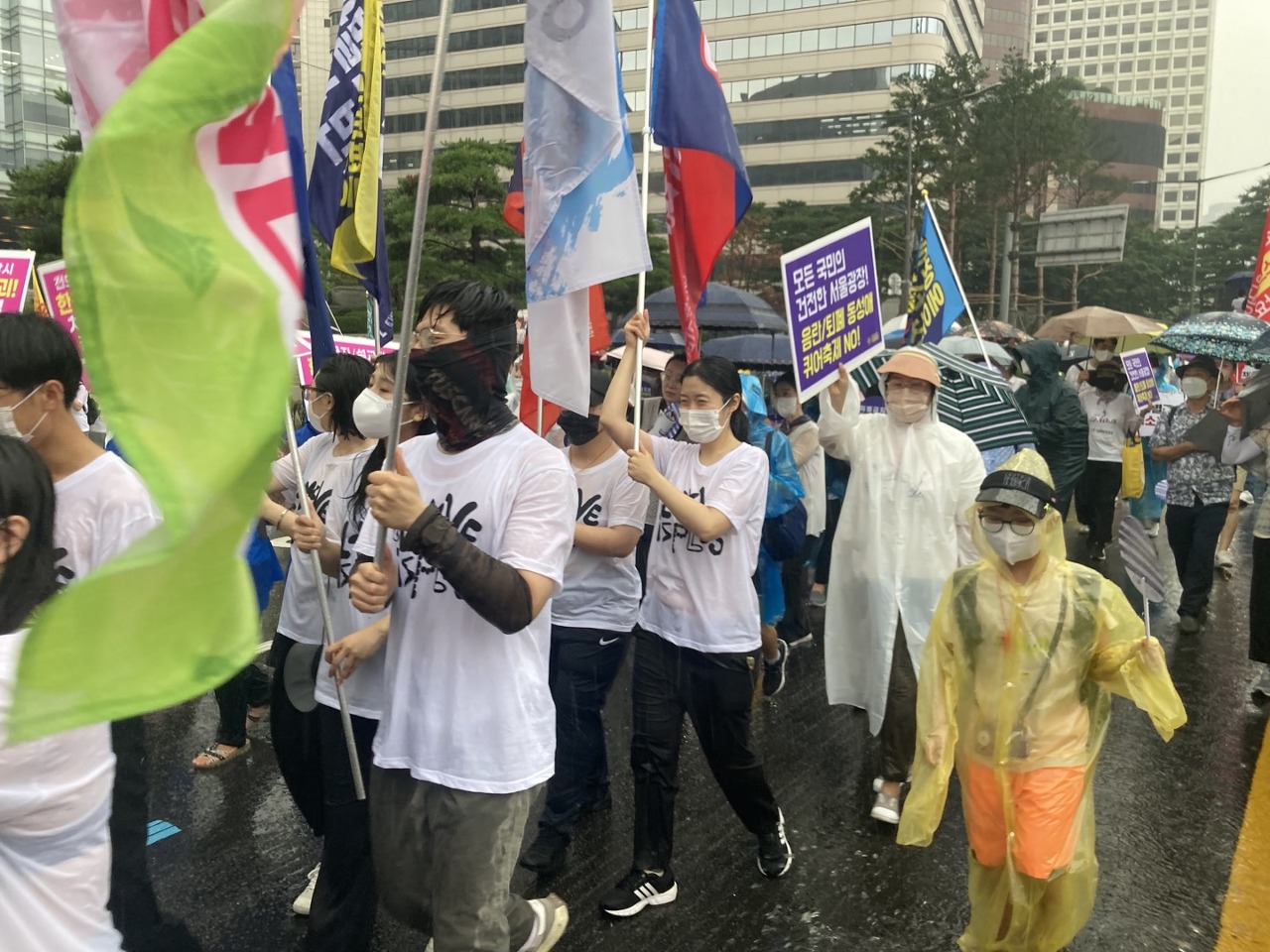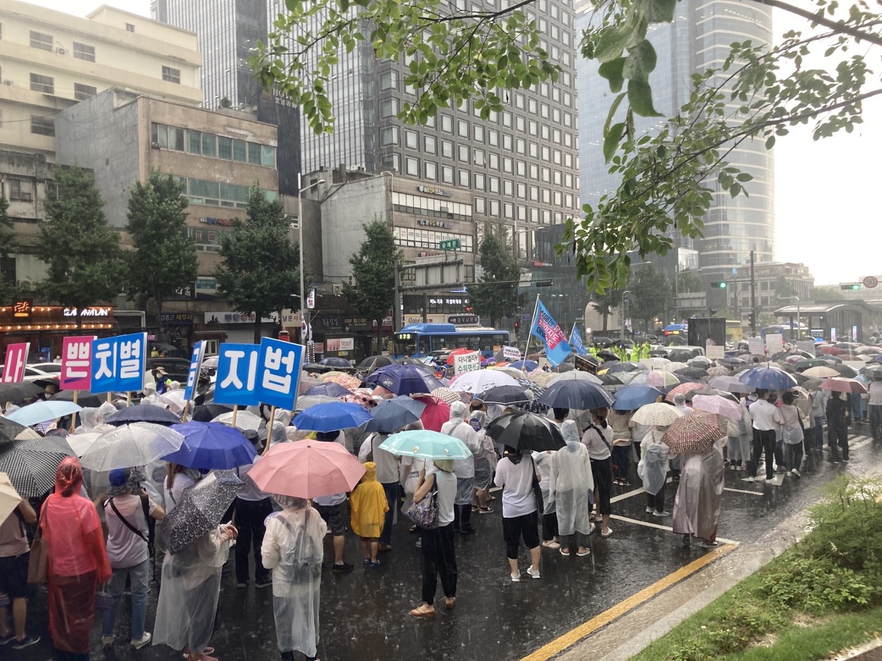 폭우가 내린 가운데 참가자들이 거리행진을 하고 있다. ©노형구 기자