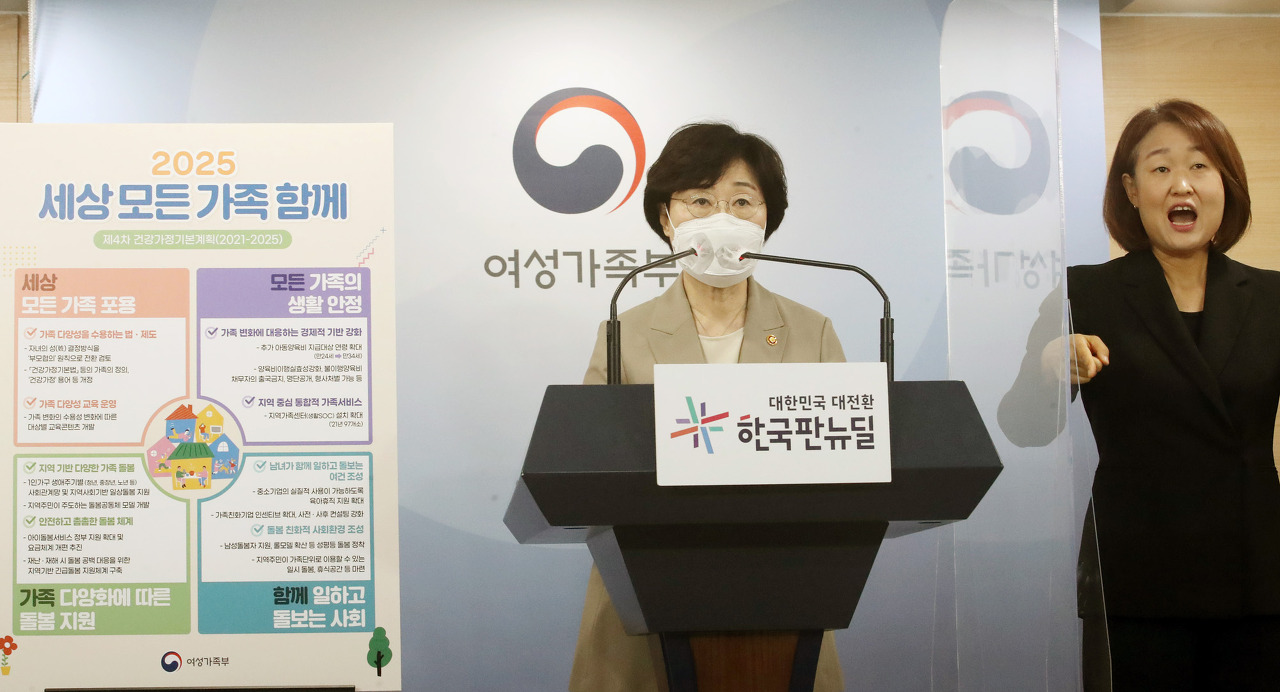 정영애 여성가족부 장관이 지난달 27일 오전 정부서울청사 합동브리핑실에서 제4차 건강가정기본계획 관련 브리핑을 하던 모습. ©뉴시스 최근 결성된 ‘건강가정기본법개정안 반대 전국단체 네트워크’(건반넷)가 3일 여성가족부(이하 여가부)의 제4차 건강가정기본계획에 대한 반대 성명을 발표했다.