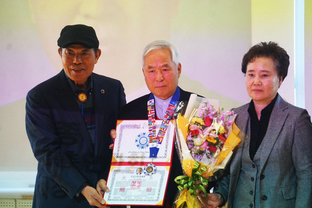 김포성폭력상담소에 성금을 전달했다. ©장지동 기자 이어 성금 전달 순서에선 대표회장 신화석 목사·김영진 장로가 김포성폭력상담소에 성금을 전달했다. 다음 한반도평화메달 수여식에선 세기총 3대 대표회장 김요셉 목사·4대 대표회장 고시영 목사·6대 대표회장 정성영 목사·9대 대표회장 심평종 목사에게 메달을 수여했다.