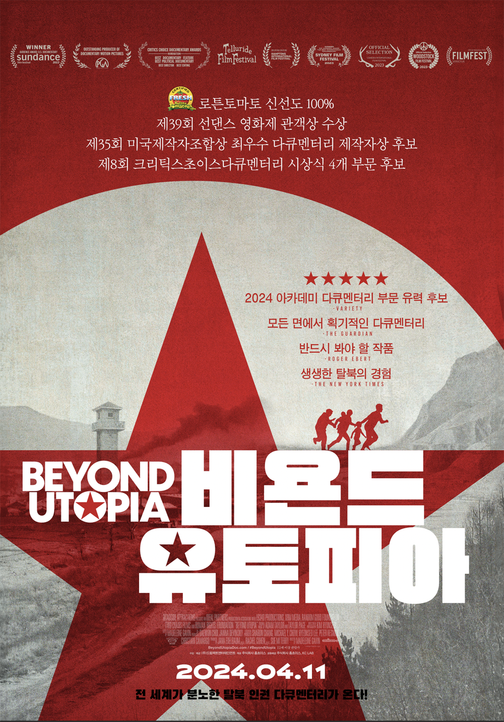자유를 향한 목숨을 건 1만2천km의 생생한 북한 탈출기를 영상에 담은 다큐멘터리 영화 <비욘드 유토피아>가 오는 4월 11일 재개봉한다. <비욘드 유토피아>는 낙원이라고 믿고 자란 땅을 탈출하려